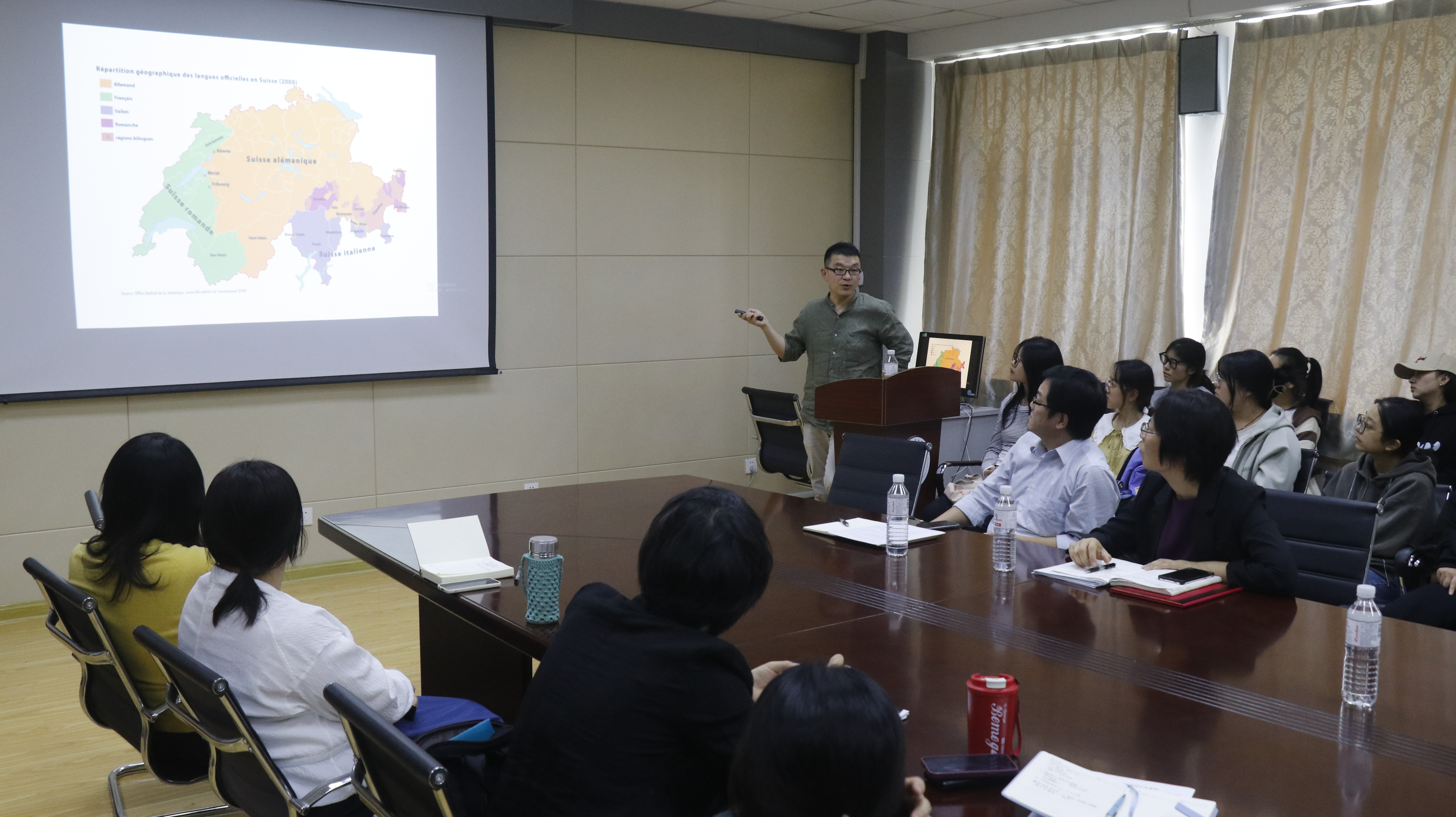 最后,法国索邦大学访问学者、外交部派驻日内瓦代表团成员、beat365英国官方网站教师申永杰进行了“侨星论坛”的专题讲座《驻日内瓦代表团见闻》。申老师从日内瓦的地理历史、驻日内瓦的国际组织、日内瓦代表团工作见闻、瑞士风土人情等方面介绍了自己作为外交部派驻日内瓦代表团成员的经历、见闻,并分享了自己的驻外感悟,号召同学们打好扎实的语言基本功、拥有多种语言能力、勇敢走向国际舞台。