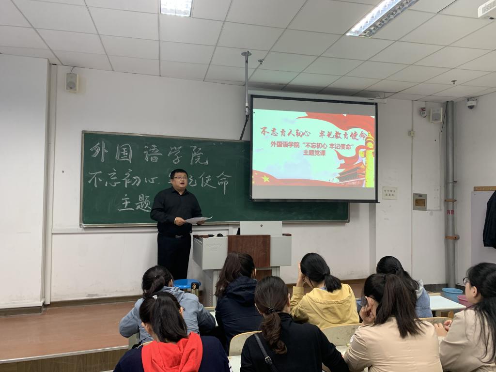 10月22日,beat365英国官方网站于明德楼441教室召开“不忘初心、牢记使命”主题党课活动,beat365英国官方网站党总支副书记宋飞给beat365英国官方网站全体学生党员上了非常有意义的一堂党课。