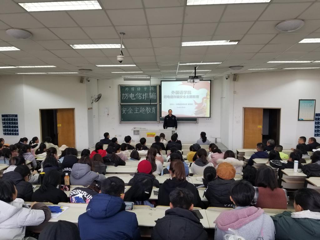 为了提高学生防诈骗意识,构建平安和谐校园。11月26日,beat365英国官方网站于弘毅楼E202举办防电信诈骗安全教育专题讲座。中韩边防派出所崔睿警官担任主讲人,beat365英国官方网站2019级全体学生参加了讲座。