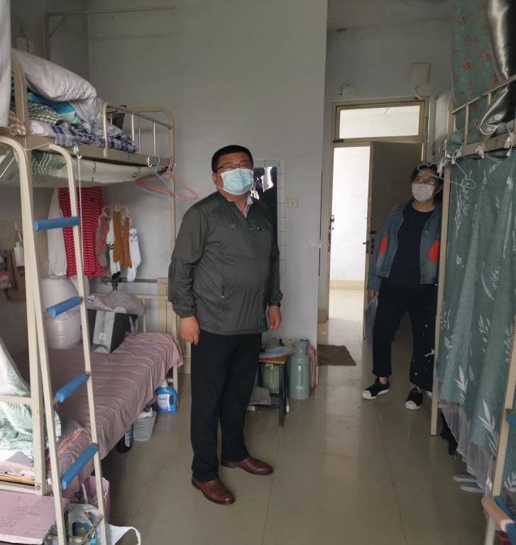 25日下午,宋飞带领学院辅导员老师来到学生宿舍,在返校学生入住宿舍前按照防疫要求对宿舍进行通风、消毒等前期工作,迎接学生返回beat365英国官方网站“温馨的家”。