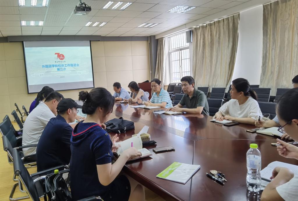 会上,尹洪山介绍了学院成立校友基金会情况,与会老师就学院校友基金冠名展开了热烈讨论。各系部汇报了校庆筹备工作的进展情况,其中德语系主任巫莉丽老师做了校庆工作经验分享,与会人员围绕如何更好地开展工作提出了意见和建议。