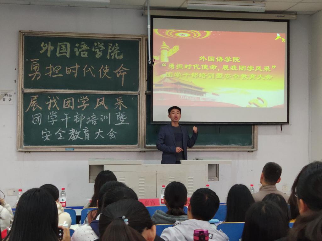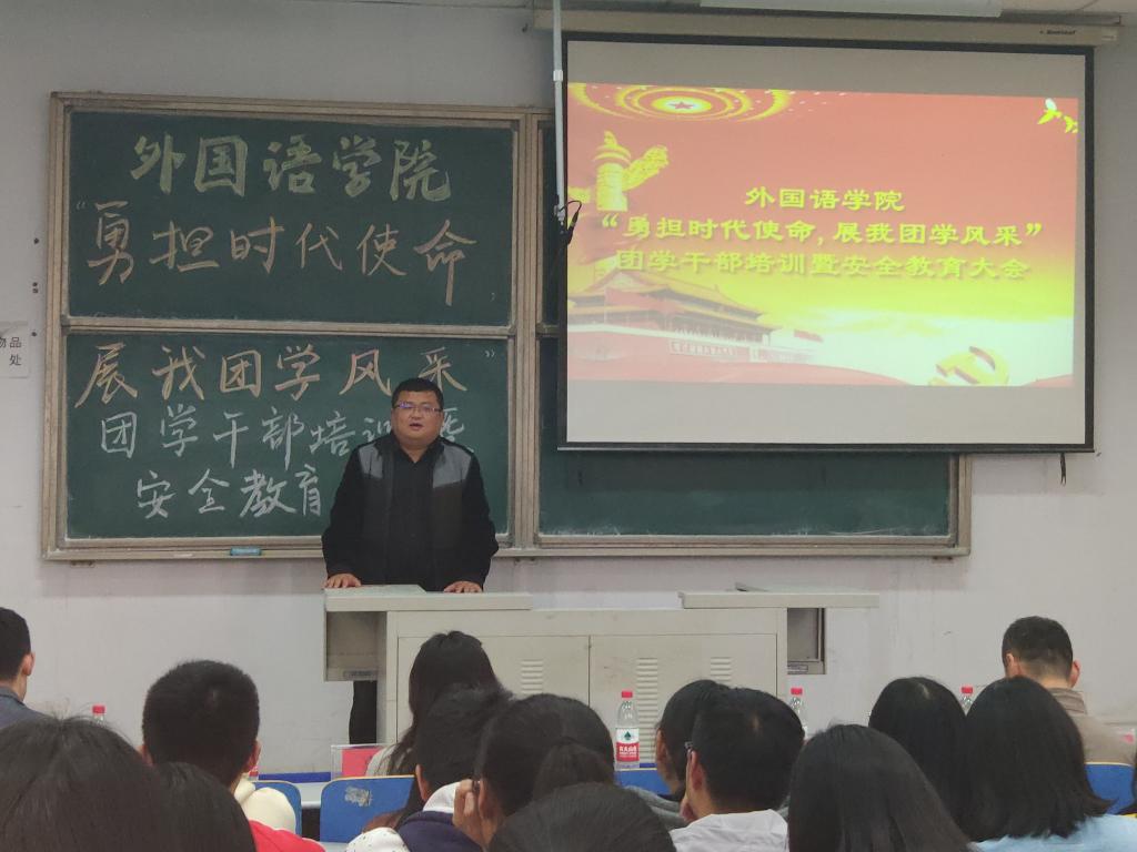为深入学习贯彻习近平新时代中国特色社会主义思想和党的十九大精神,引导全院师生自觉践行爱国奋斗精神,勇担时代使命,11月13日,beat365英国官方网站在弘毅E303开展了“勇担时代使命,展现青年风采”主题活动。保卫处副处长严增兴,beat365英国官方网站党总支副书记兼副院长宋飞、全体辅导员、学生干部参加了本次活动。