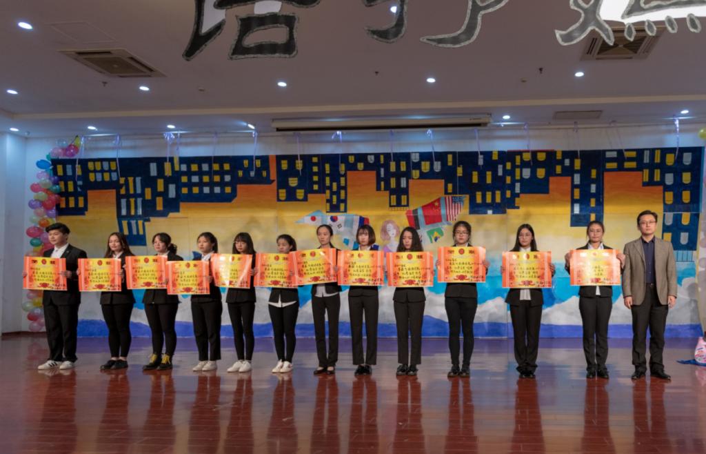 晚会中,尹洪山为2017-18学年先进班集体颁奖;张洪坤为优秀宿舍颁奖。