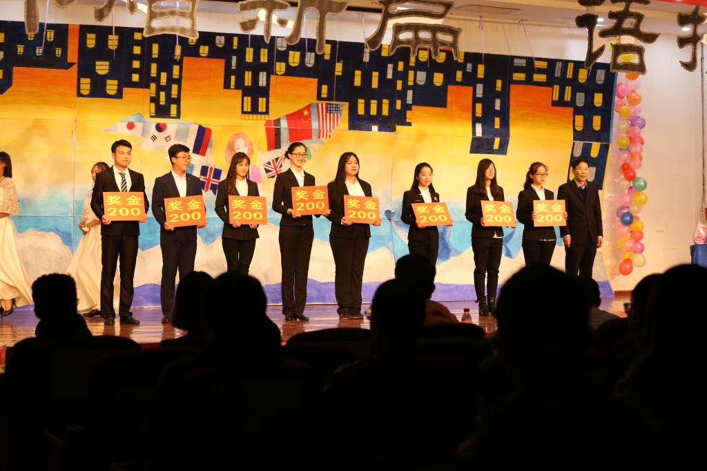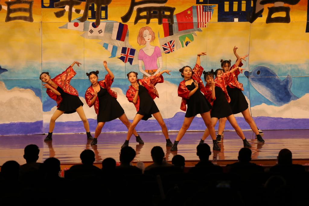 李志新等同学用五国语言演绎的歌曲串烧《青春的歌》,优美动听,充分展现了外院特色。歌曲《往后余生》、部长舞《We Are Yong》,表达了当代大学生们对美好生活的追求和向往。形式新颖的荧光舞《strike back》,将科技与现实相结合,赢得了全场观众的阵阵掌声。学院外文广播电台的同学们表演的歌舞《hallow and hello》,这些发音标准的外语播音员用青春活力的舞蹈给大家带来了不一样的体验;特别值得一提的是来自全体辅导员、学生会主席团同学表演的歌曲《彩虹》,传递着外院师生潮气蓬勃,追求梦想的信念,将晚会推向了高潮。演出在合唱《歌唱祖国》中落下帷幕。