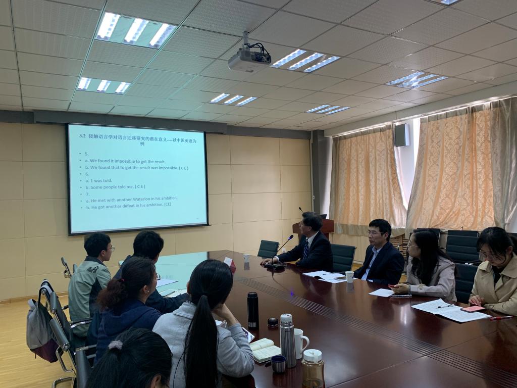 5月8日下午,上海交通大学beat365英国官方网站教授、博士生导师俞理明应我院邀请在外语楼517室作了题为《语言迁移新视角》的报告。报告会由尹洪山院长主持,副院长吕耀中、院长助理刘靖及部分教师和研究生参加了报告会。