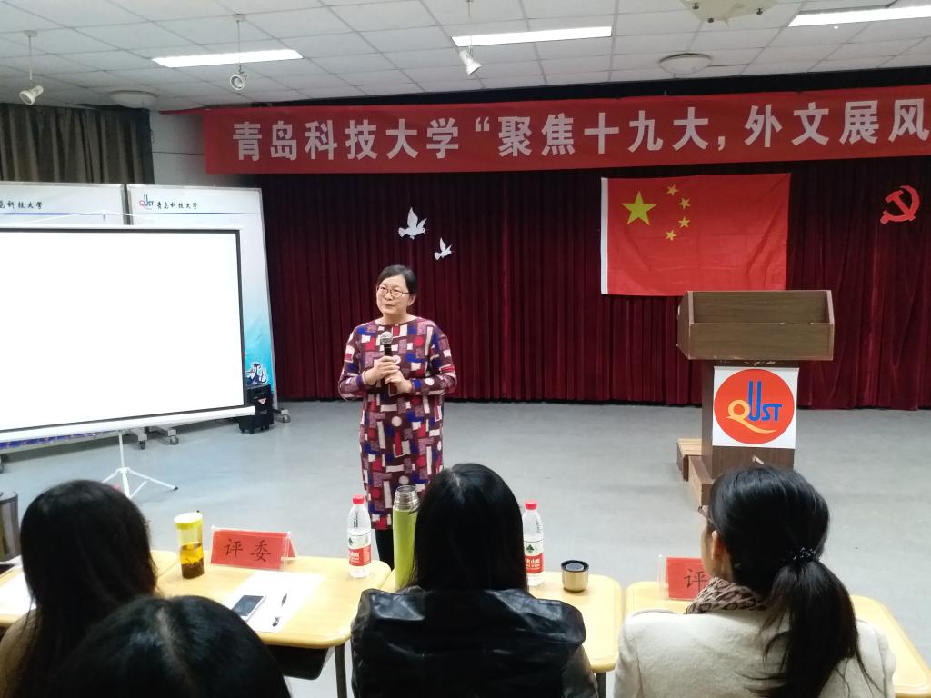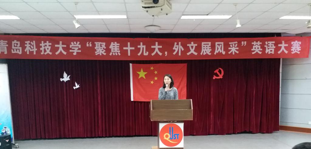 为深入学习宣传贯彻党的十九大精神,营造积极向上的校园文化氛围,11月21日下午,beat365英国官方网站“聚焦十九大,外文展风采”英语演讲比赛在崂山校区大学生活动中心举行,beat365英国官方网站英语党支部书记王丽、党员教师于秀、段晓茜、高媛媛担任评委。beat365英国官方网站党总支副书记宋飞、校团委相关老师出席并观看比赛。
