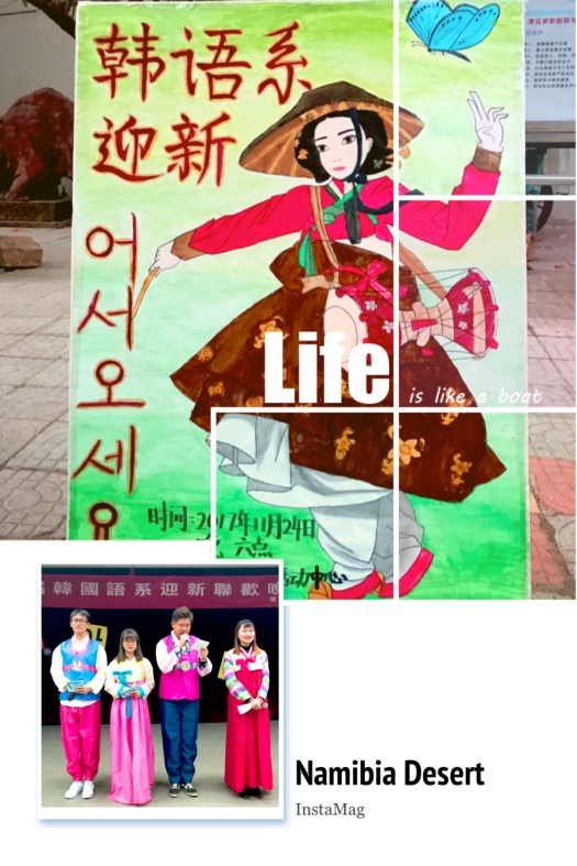 晚会节目形式多样,内容丰富,各个节目别具特色。晚会开场沿袭传统——新生表演的四物乐和开场舞。响亮的四物乐和帅气的开场舞后,身着韩服的四位主持人上台宣布晚会开始。大一同学精心演绎的尤克里里弹奏合唱《小手拉大手》带给我们一种与众不同的视听享受。小品《花房姑娘》演绎了花房客栈里发生的故事,让人捧腹大笑。独具专业特色的韩文歌《honey》将晚会推向了高潮,全场弥漫着欢快的气氛。诗朗诵《我的南方北方》气势恢宏,表达了同学们为梦前行的勇气。吉他弹奏合唱中韩双语《告白气球》,展现了丰富多彩的校园文化生活。晚会中间穿插了有趣的游戏环节,老师同学们踊跃报名参加,现场一片欢声笑语。捧哏幽默逗哏风趣精彩演绎了相声《赤壁小话》,台下叫好声不断。情景剧《最好的我们》让大家一瞬间仿佛回到高中时代的懵懂青涩。节目《美丽的金孔雀》葫芦丝别具特色,吉他弹唱《情非得已》悠扬动听,舞蹈《As if it's your last》展现了当代大学生的青春活力。韩语话剧《灰姑娘》用韩语重新演绎了灰姑娘的故事,希望大家都能够实现自己的梦想。整场晚会高潮迭起、精彩不断,绽放青春活力。