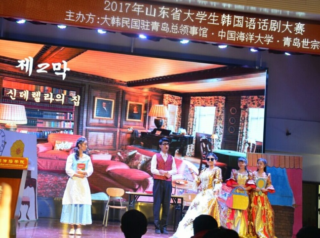 2017年11月25日上午,由大韩民国驻青岛总领事馆、中国海洋大学和青岛世宗学堂共同主办的“2017年山东省大学生韩国语话剧大赛”在中国海洋大学文新学院乐海堂拉开帷幕。中国海洋大学李华军副校长、大韩民国驻青岛总领事馆李寿尊总领事等出席大赛开幕式。