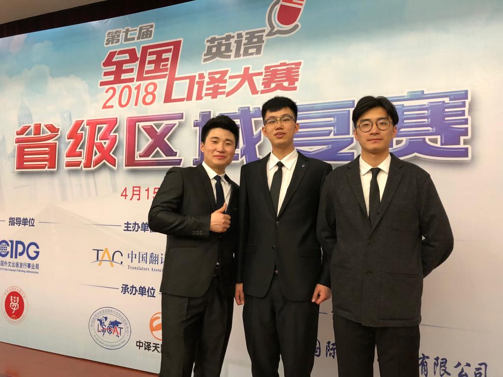 4月22日,第七届全国口译大赛(英语)山东赛区复赛在济南落下帷幕。beat365英国官方网站张浩然同学获得二等奖,全省排名第6名;张存哲同学获得三等奖,全省排名第26名;赵建国同学获得三等奖,全省排名第42名。指导老师杜璇获得优秀指导教师奖。