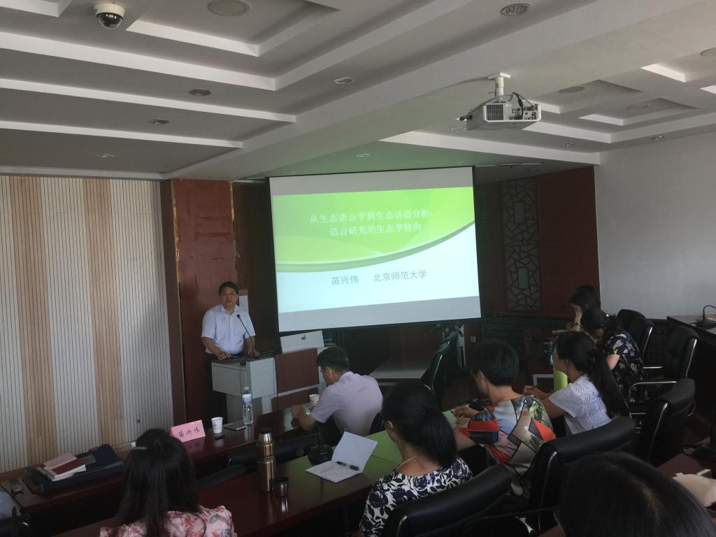 9月7日下午,北京师范大学外文学院博士生导师苗兴伟教授应邀来我院进行学术交流,在经管楼511会议室做了一场题目为“从生态语言学到生态话语分析:语言研究的生态转向”的学术报告。报告会由beat365英国官方网站院长尹洪山主持,副院长康宁以及外语学院的部分教师与学生参加了这次讲座及交流。