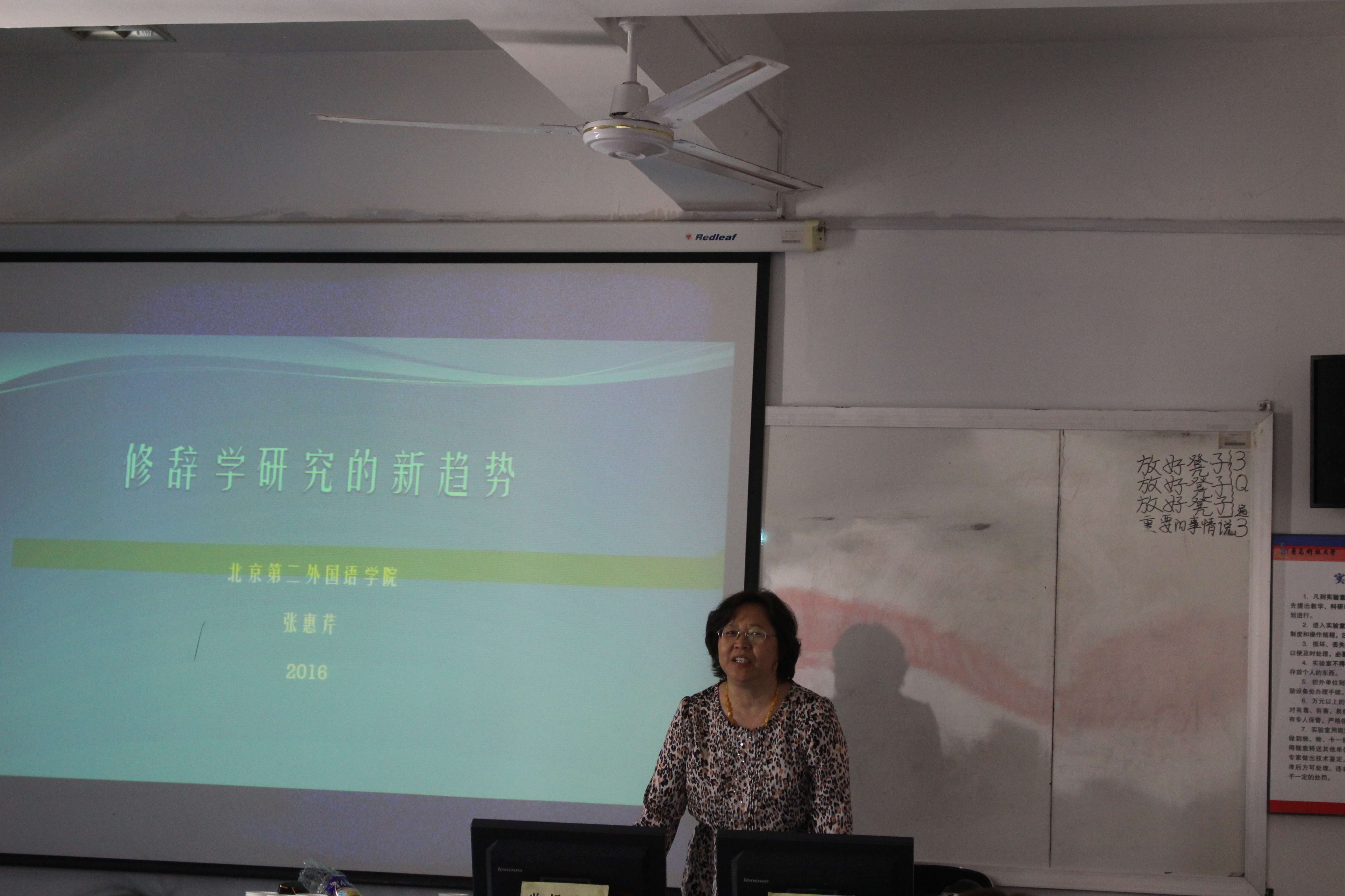 近日,北京第二beat365英国官方网站俄语系系主任、白俄罗斯研究中心主任张惠芹教授应邀来到我校,为beat365英国官方网站俄语系师生带来了一场有关“俄语修辞学研究新趋势”的专题报告。报告会由beat365英国官方网站尹洪山副院长主持。beat365英国官方网站部分专业教师、俄语系教师及全体俄语系本科生、研究生参加了报告会。