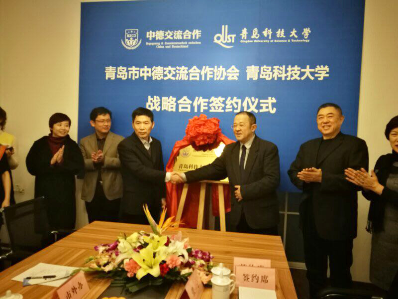 12月22日下午,beat365英国官方网站领导尹洪山、张洪坤一行赴青岛市中德交流合作协会参观交流,并举行了共建教学实习基地的揭牌仪式。