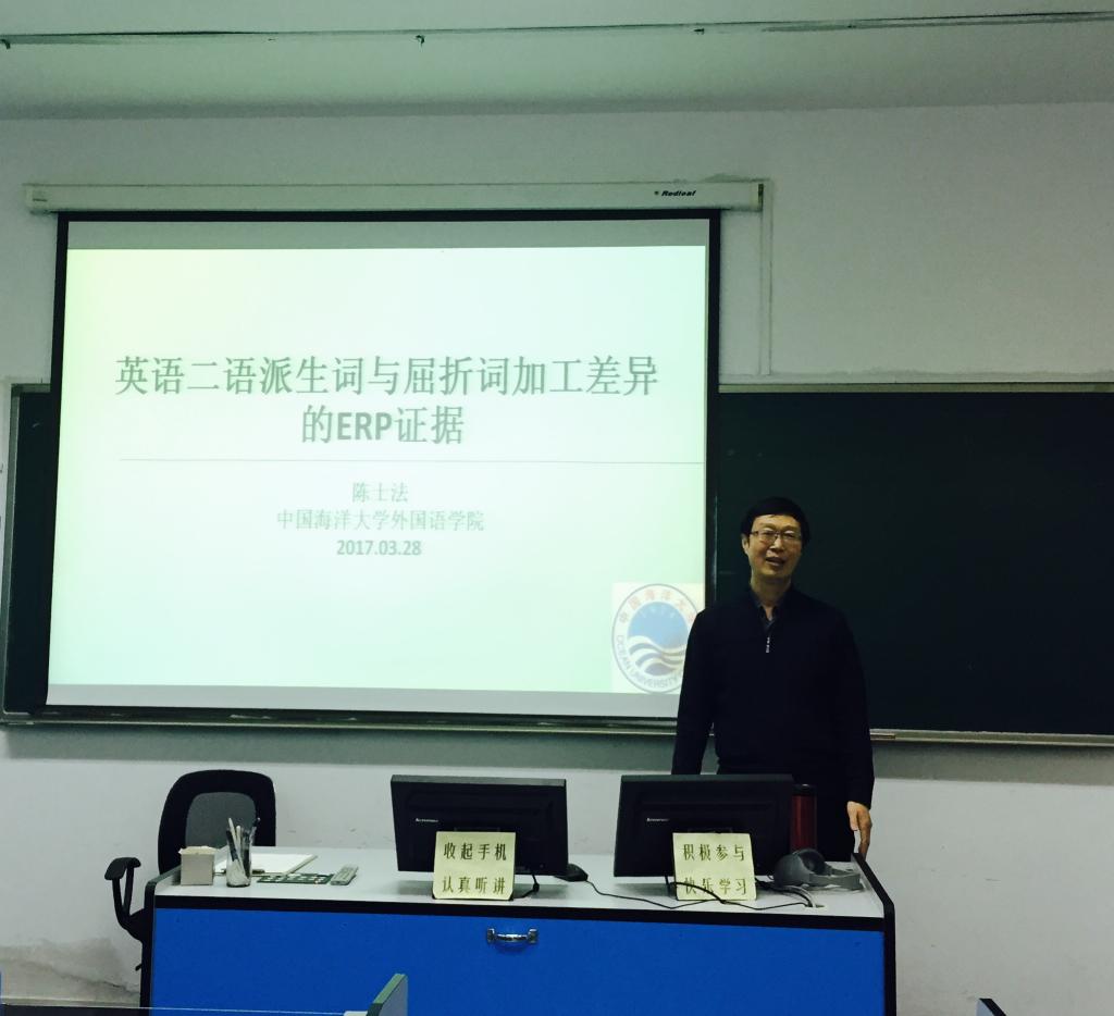 3月28日下午,中国海洋大学beat365英国官方网站教授、硕士研究生导师陈士法教授应邀来我院作报告。报告主题为“英语二语派生词与屈折词加工差异的ERP证据”。报告会由副院长吕耀中主持,院长尹洪山及学院部分师生参加了此次报告会。