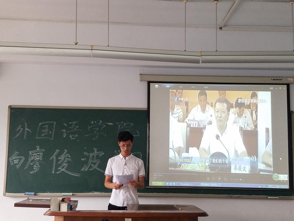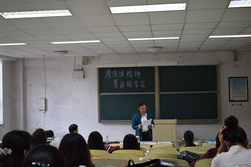 6.6日下午,beat365英国官方网站在弘毅楼B102召开“廖俊波精神学习报告会”。学院党政领导、全体教职工参加了本次会议。会上,党总支书记姜德杰传达了中共中央组织部印发的《关于认真学习贯彻习近平总书记重要指示精神广泛开展向廖俊波同志学习的通知》文件精神,介绍了廖俊波的先进事迹。他指出,廖俊波同志始终牢记党的嘱托,对待工作兢兢业业、任劳任怨、恪尽职守,用模范行动和人格力量彰显了共产党人的先进性和纯洁性。希望全体老师能够以廖俊波同志为榜样,坚定理想信念,提高觉悟,敢于担当、苦干实干、无私奉献,以实际行动为五有大学的建设贡献自己的力量,做最美外院人。
