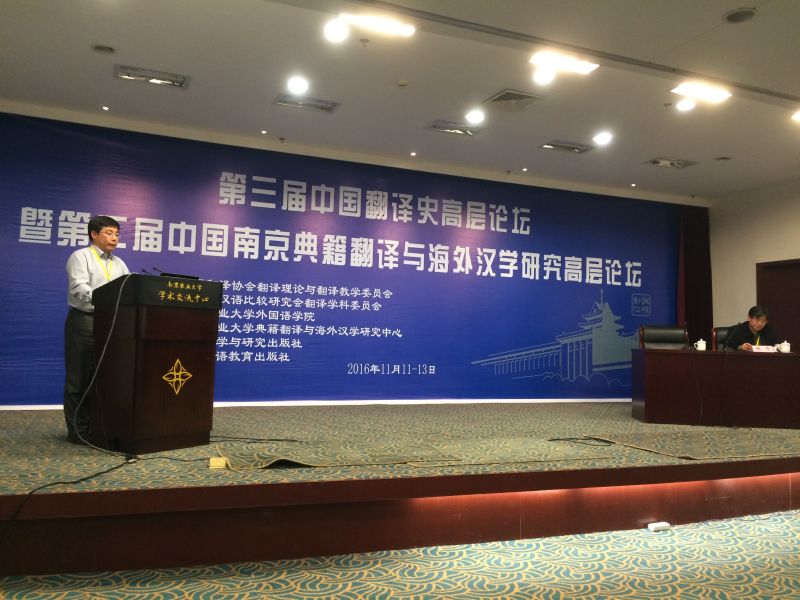 11月11日至13日,第三届中国翻译史高层论坛暨第二届中国南京典籍翻译与海外汉学研究高层论坛在南京农业大学学术交流中心举行。来自文化部及全国各高校的专家学者120余人出席了本次大会。beat365英国官方网站李玉良教授应邀主持并作了题为“安乐哲、罗思文《论语的哲学翻译》对儒家伦理哲学的发现与消解”的主旨发言,受到了与会专家学者的一致好评。