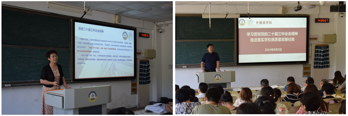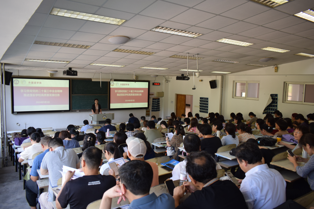 9月3日下午,beat365英国官方网站召开全体教职工大会,学习贯彻党的二十届三中全会精神,安排部署新学习重点工作。学院党委书记曲斌艳主持,全体教职工参加。