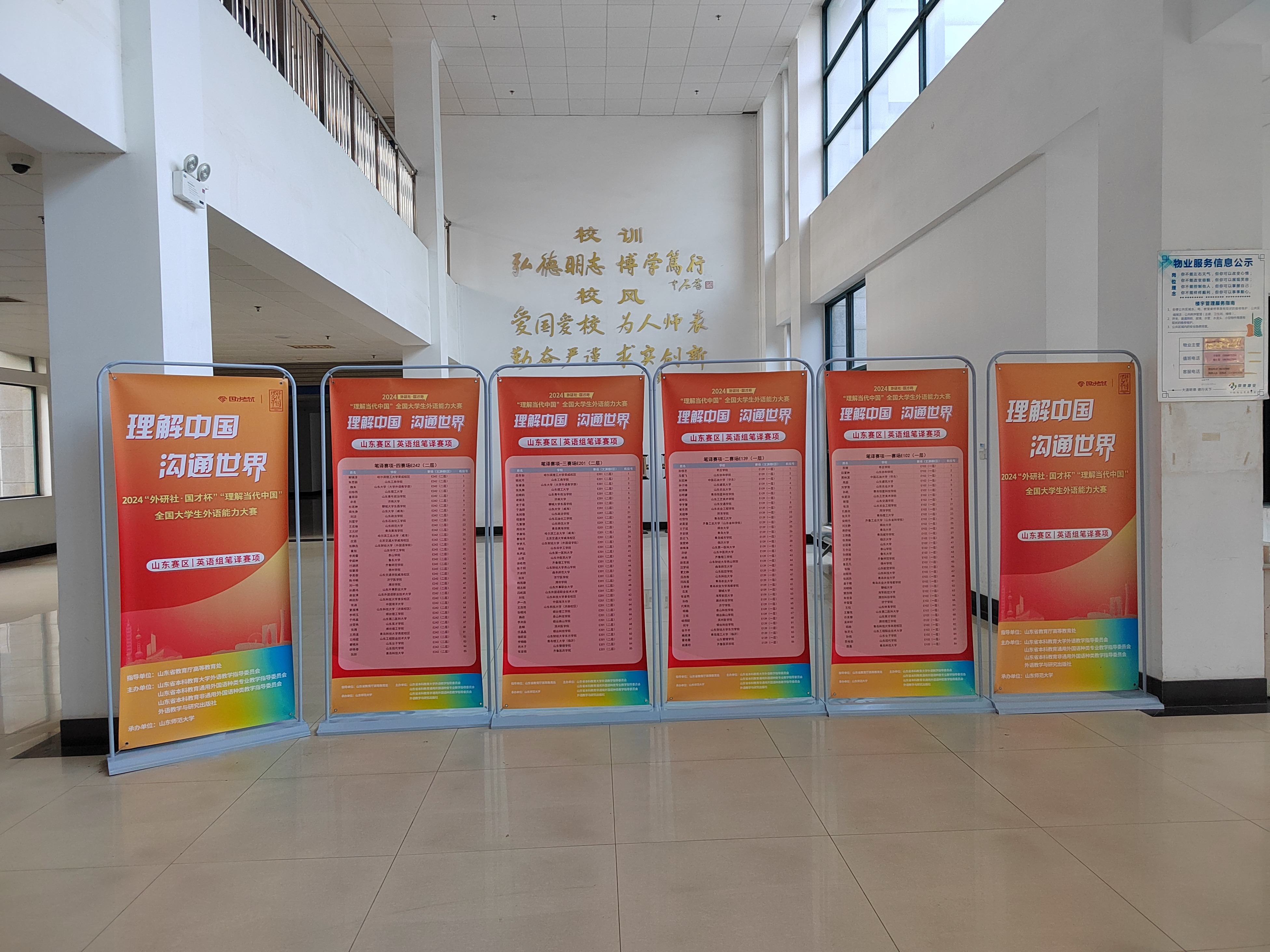 本次省赛竞争十分激烈,共有来自全省78所高校的695名同学角逐省赛,其中综合能力赛项300人、口译94人、笔译148人、演讲153人。该比赛属于国家教育部大力支持的高水平大赛,旨在提升大学生对中国文化的理解和向世界传播中国声音及中国文化。比赛由山东省教育厅高等教育处指导,山东省本科教育大学外语教学指导委员会、山东省本科教育通用外国语种类专业教学指导委员会、山东省本科教育非通用外国语类教学指导委员会和外语教学与研究出版社主办,山东师范大学承办。我校学子不畏强手、精心备赛、沉着应战,最终取得了可喜的成绩。