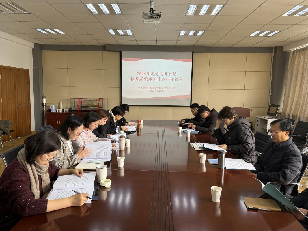 述职评议采取现场述职方式进行,大学外语第一教研室党支部书记孟婧、大学外语第二教研室党支部书记王丽、英语系党支部书记王丽、办公室党支部书记宋丽超、多语种党支部书记于豪、学生党支部书记马昆、研究生党支部书记胡然逐一进行了现场述职。党委书记曲斌艳采用“一述一评”的方式对各党支部书记进行点评,充分肯定每个支部的工作特色和亮点,明确指出工作中存在的不足和改进方向。随后,与会人员对各支部述职情况进行现场评议。