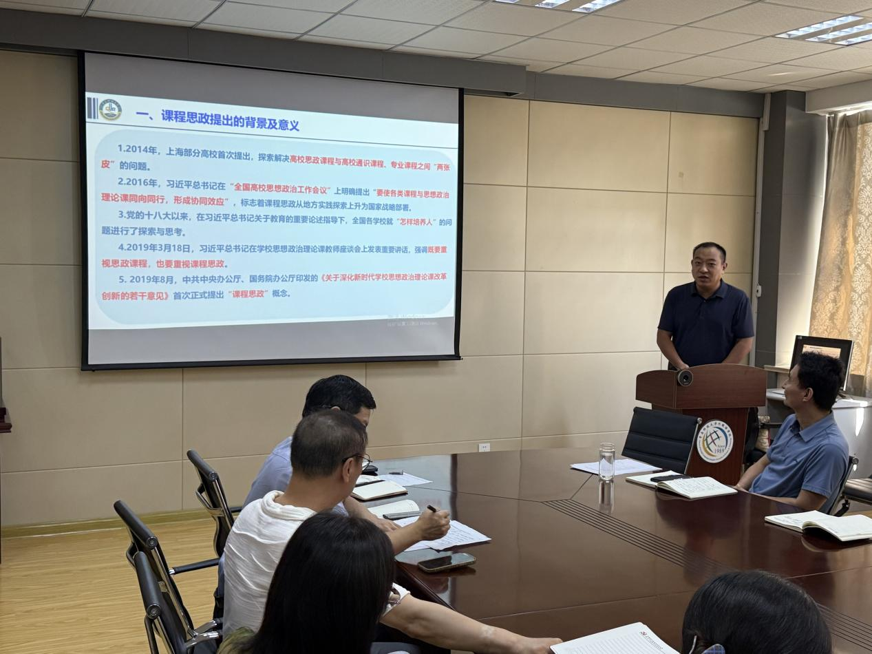 会上,学校教师教学发展中心教师教学发展科科长于杰亮作了题为《坚持立德树人强化课程思政》的专题报告。报告全面梳理了课程思政提出的背景与意义,详细讲解了课程思政相关政策和文件,系统总结了我校课程思政所取得的成果以及下一步工作计划。同时,针对课程思政教学设计的核心要素、方法策略等方面,提供了专业指导,为学院教师开展课程思政实践指明了清晰的方向,提供了明确的路径。