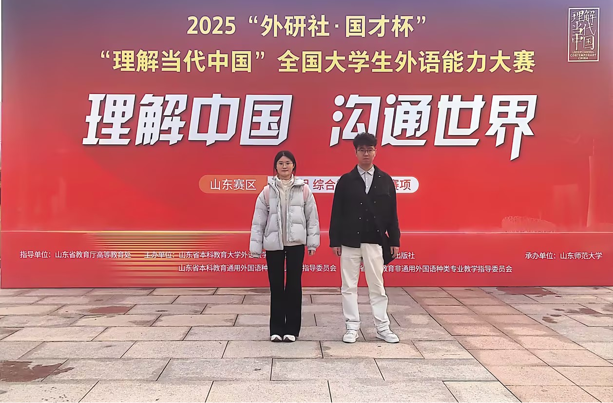12月6日,“外研社·国才杯”“理解当代中国”全国大学生外语能力大赛口译赛项全国总决赛在北京大兴外研社大楼落下帷幕,beat365英国官方网站24级翻译硕士徐佳昊同学凭借其卓越的双语转换能力与深厚的跨文化沟通素养,从全国顶尖选手中脱颖而出,冲进国赛50强,勇夺国赛银奖。另外,综合能力赛项英语234班武采辰同学荣获国赛铜奖。