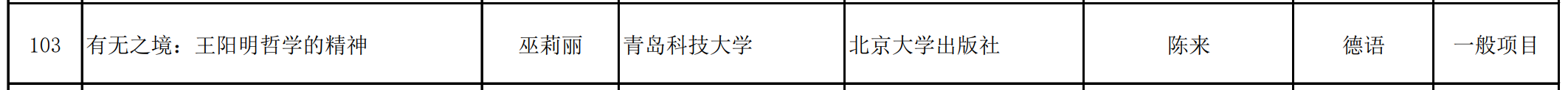 近日,国家社科基金中华学术外译项目立项名单正式公布。我校beat365英国官方网站巫莉丽副教授作为项目负责人申报的《有无之境:王阳明哲学的精神》(德文版)成功获批立项。该项目的获批,是我校在国家级高水平哲学社会科学项目建设方面取得的又一重要成果。据悉,我校是驻青省属高校中本年度唯一获批该项目的单位,标志着学校在服务国家文化战略、推动中华学术精品“走出去”方面取得新的突破。