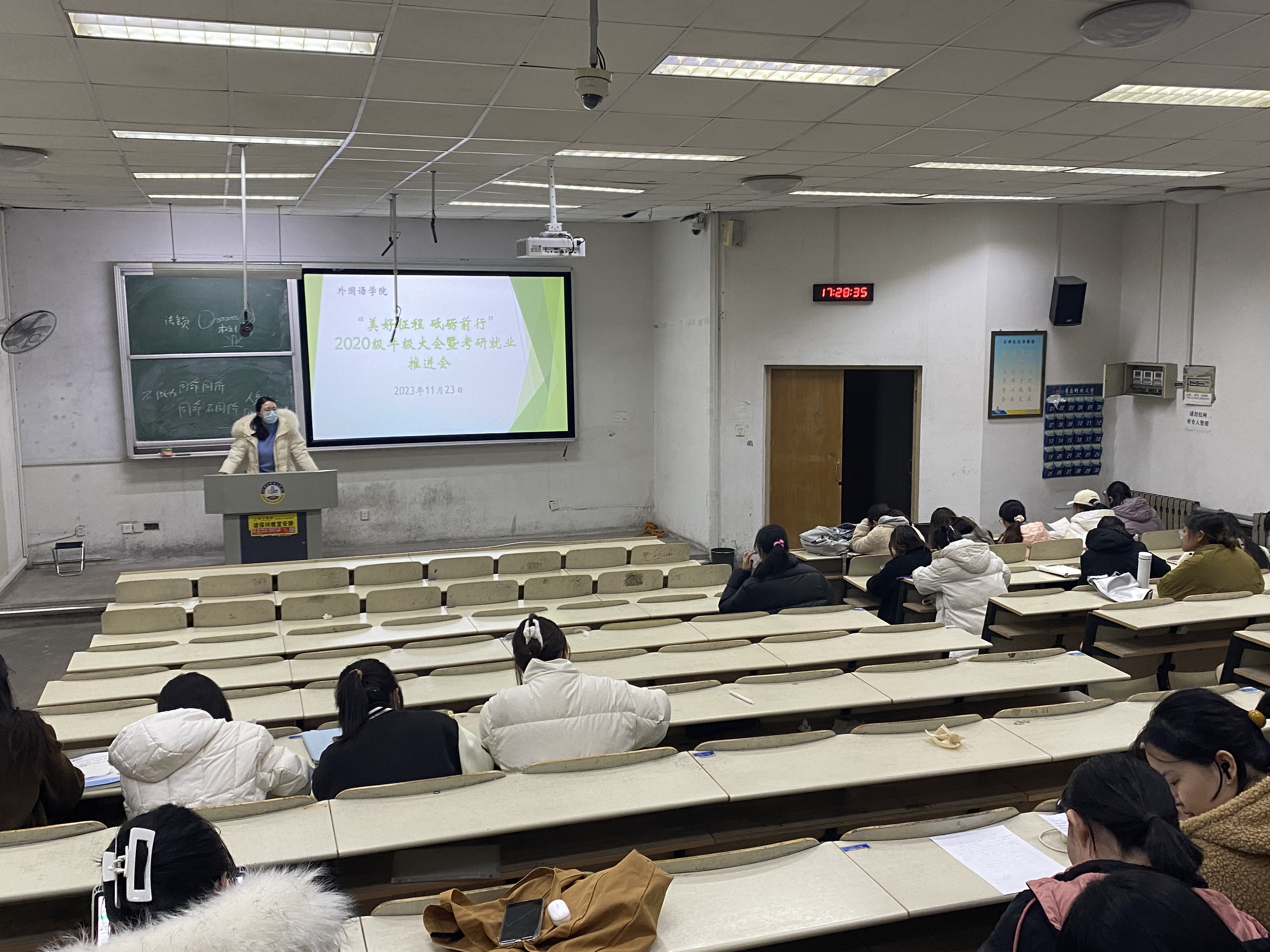 为加强毕业生就业指导与服务,营造良好的学习氛围,助力学生自身成长与发展。beat365英国官方网站于11月23日在弘毅楼E区102召开“美好征程砥砺前行”2020级年级大会暨考研就业推进会,辅导员刘妍君老师主持本次大会。