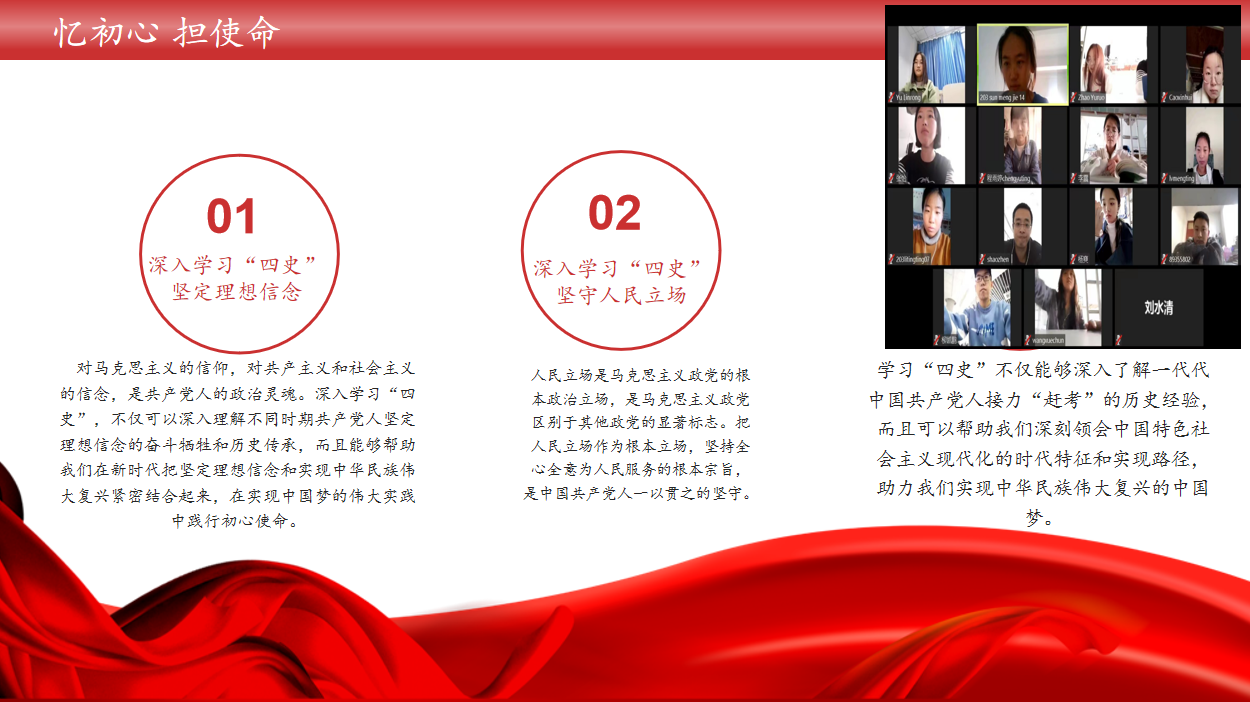 会议伊始,团支部全体人员在线上观看了学习习近平总书记在全国劳动模范和先进工作者表彰大会上的讲话。会议中总书记高度评价了工人阶级和广大劳动群众在中国特色社会主义伟大事业中的重要地位和作用,充分肯定了全国劳动模范和先进工作者的卓越贡献和崇高精神。同学们都深受鼓舞,立志为实现中华民族伟大复兴的中国梦而不懈奋斗。