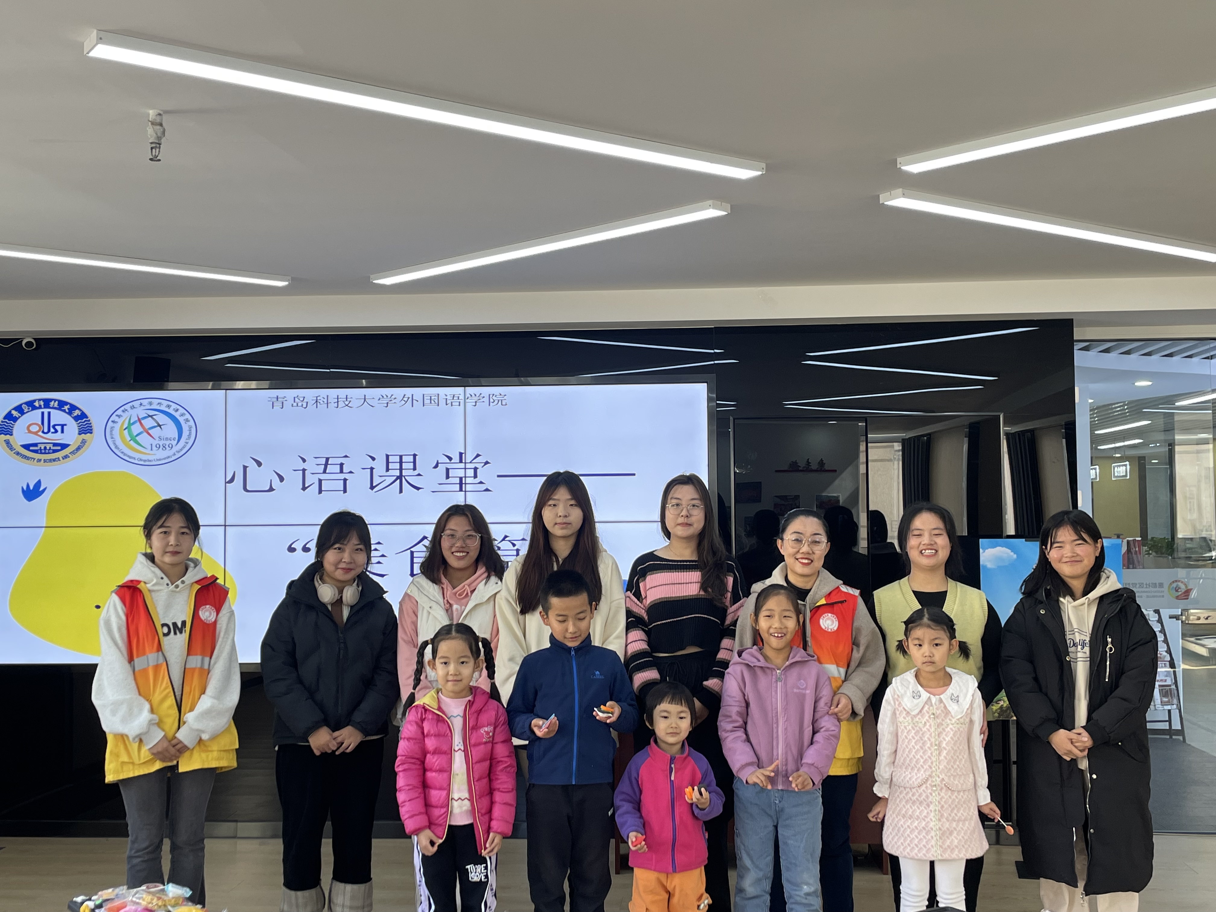 活动结束后,小朋友们和志愿者老师一起合影留念,此次beat365英国官方网站“心语课堂”之美食篇活动的成功举办,不仅让所有参与的小朋友们感受到了各国美食和语言的魅力,还为社区生活增添了新的勃勃生机!对于未来,beat365英国官方网站团支部将继续走进社区开展志愿服务,为社区带来一场场精彩的“心语课堂”。