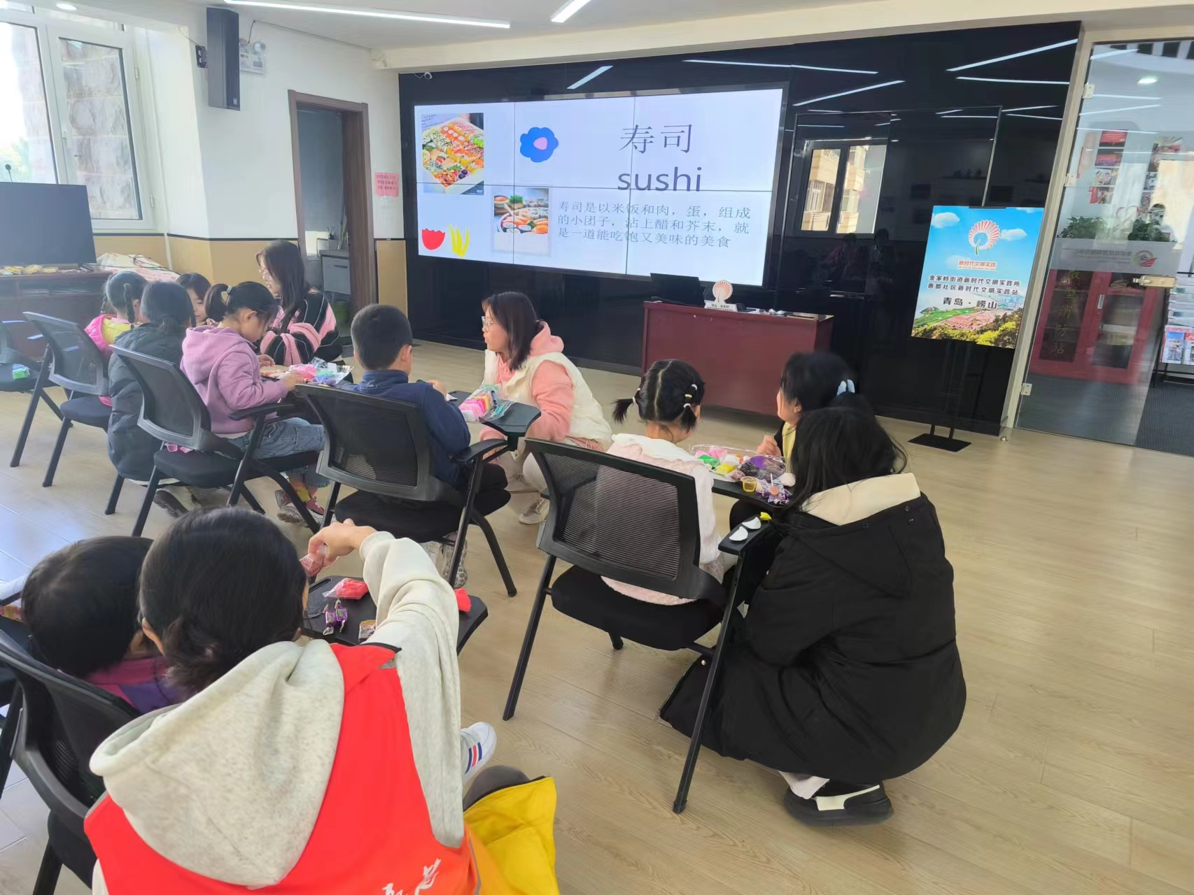 11月18日下午,beat365英国官方网站英语231班团支部的青年志愿者们来到惠都社区,为社区孩子们开展“心语课堂”进惠都社区系列活动之“心语课堂”美食篇。本次小课堂带领小朋友们了解并学习不同国家的美食文化,通过有趣的手工制作游戏为小朋友们带来了丰富的活动体验。
