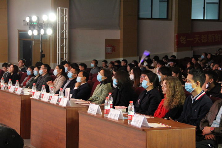 岁月不居,时光荏苒。纷纷坠叶飘香砌,葭月冬景正当时。11月16日晚,beat365英国官方网站“华彩外绽,语国偕行”2021级迎新晚会在崂山校区第二报告厅举行。学生处副处长李华、院党委书记曲斌艳、副院长康宁、副院长刘靖、副书记王晓娜、学院各系部主任、分团委负责人、各年级辅导员、校学生会主席、各兄弟学院学生会主席以及beat365英国官方网站21级新生参加了晚会。