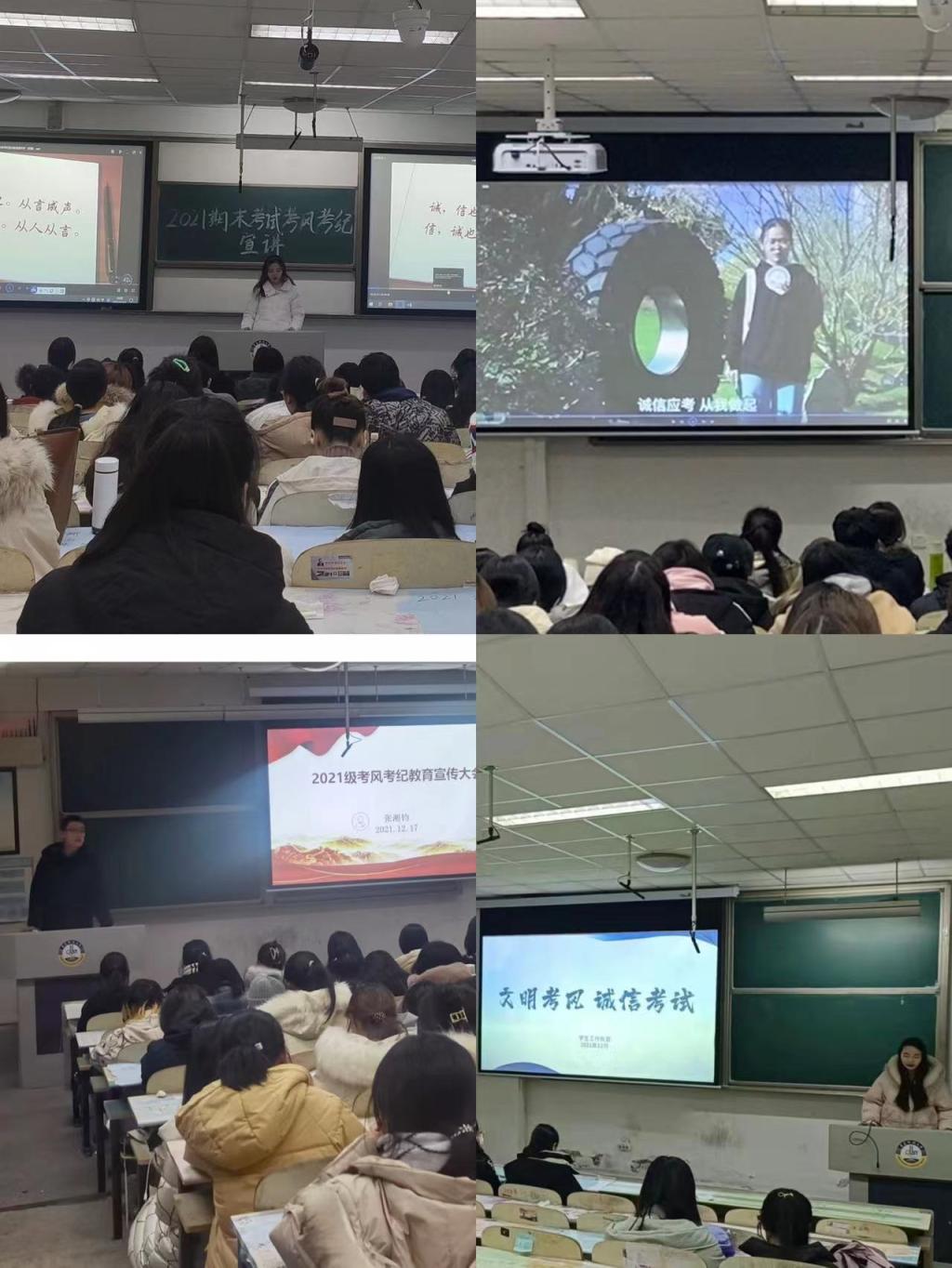 2021年秋季学期期末考试在即,为进一步加强学风建设,严肃考风考纪,加强诚信教育,营造一个公平公正的考试环境,12月17日晚,beat365英国官方网站四个年级在弘毅楼教室内同时开展了2021年秋季学期考风考纪教育宣传大会。