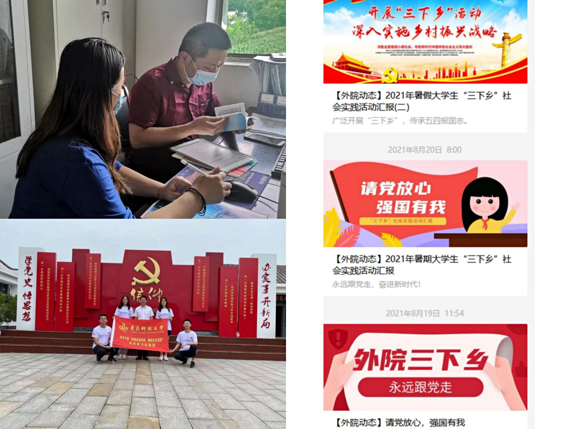 2021年7月,beat365英国官方网站启动了以“请党放心,强国有我”为主题的2021年暑期大学生“三下乡”社会实践活动。 各班级积极响应,陆续出发,组成了“致敬改革闯将,赓续红色基因”党史学习教育实践团、beat365英国官方网站疫情下的中国国情体察小分队等,开启了属于他们的暑期实践之旅。2021年寒假,beat365英国官方网站学子踊跃报名,积极投身社会实践,寒假期间,通过“青鸟计划·引凤归巢”实践活动、“传承红色基因·践行初心使命”专项活动以及“挑战杯”大学生课外学术科技作品竞赛等开展了形式多样、内容丰富的实践活动。返校后及时举办“实践归来话收获”总结交流会,参与社会实践的同学们通过文稿、PPT或视频的形式向大家分享了心得体会与感受。