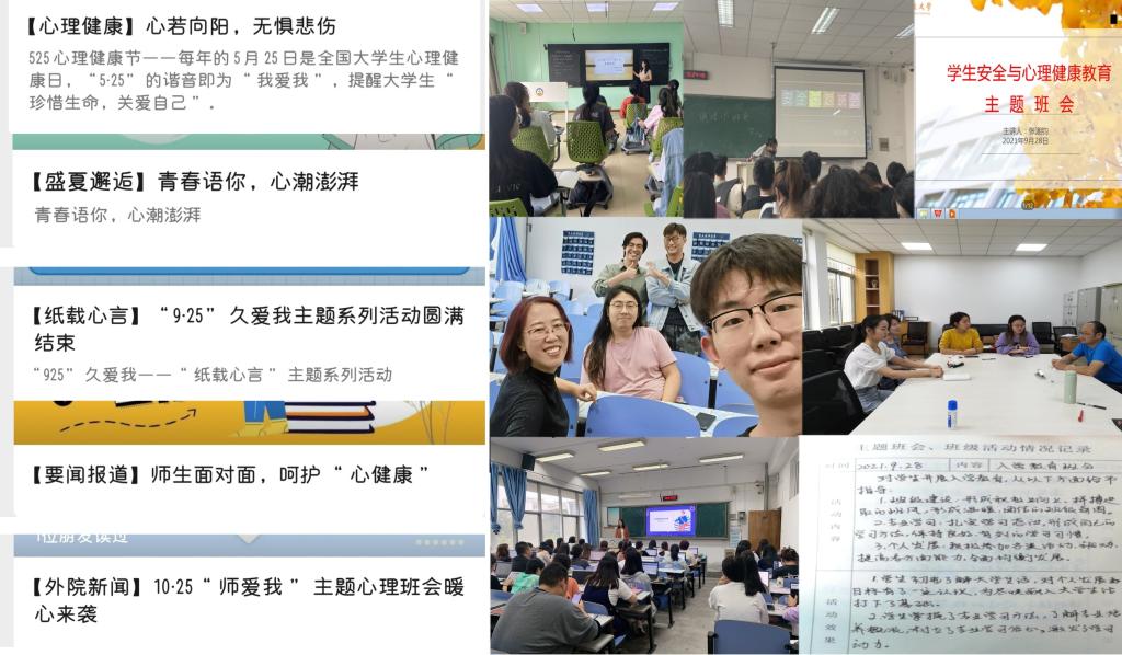 9月25日,学生工作处和研究生院联合下发了《beat365英国官方网站关于进一步加强学生安全和心理健康教育的工作方案》,以“八个一”为主要内容的学生安全和心理健康教育工作就此展开。“3·25”善爱我主题活动中,同学们用心设计了心理健康宣传海报;青科大beat365英国官方网站与数理学院“5·25”心理健康日活动在南苑操场火热开展;纸载心言——“9·25”久爱我主题系列活动中,我院与中德学院通过信封交换活动有效地帮助同学们排解心灵上的困扰,拂去心理上的迷茫。