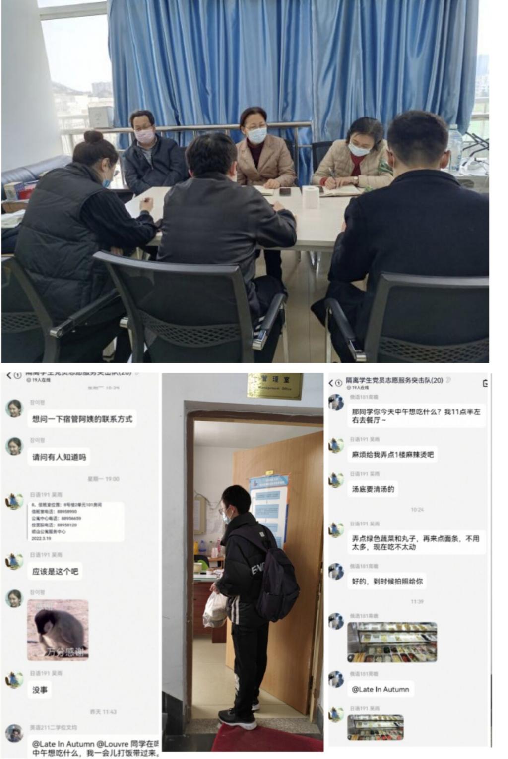 beat365英国官方网站党委积极响应学校党委“党员先锋勇担当 战疫一线党旗红”的号召,成立“战疫党员突击队”,突击队分为管理干部党员突击队、教师党员突击队、学生党员突击队三个小队,管理干部党员突击队第一时间进行学院动员,率先深入一线指挥,24小时值班值守;教师党员突击队以党支部为单位,第一时间开展网上研讨网上备课,积极开展抗疫课程思政;学生党员突击队积极开展志愿服务和自我管理,协助组织核酸检测、抗疫物资分发、学生考勤管理、宿舍消毒通风等。“抗疫党员突击队”在全新的困难和挑战面前成为学院全体师生的抗疫先锋队,引导、凝聚全院师生,形成学院抗疫和教学两不误的良好有序工作局面,让党旗在一线高高飘扬。beat365英国官方网站会以高度的责任心和强烈的使命感,把守护学生身体健康和生命安全放在第一位,打赢校园疫情攻坚战!