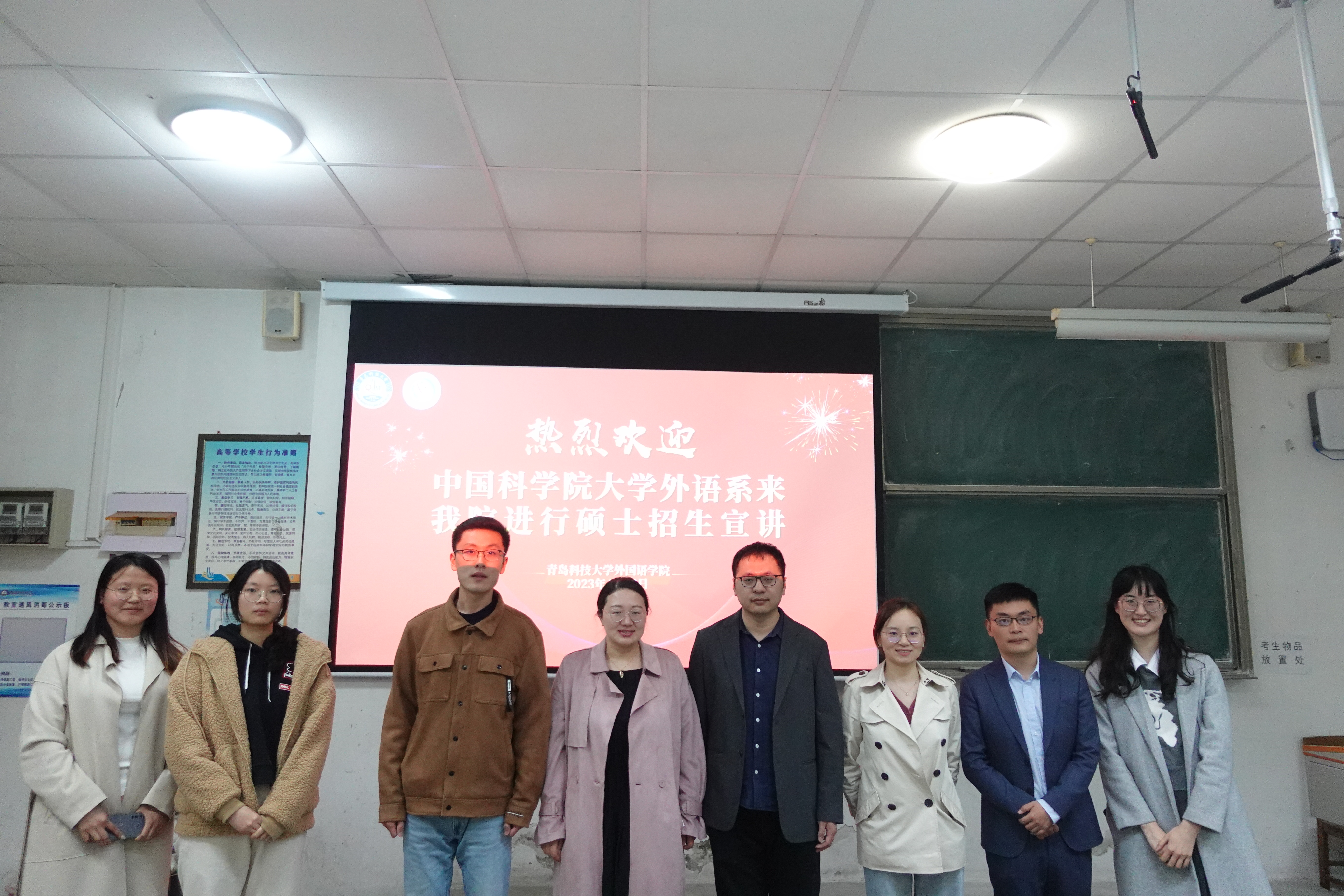 4月22日晚,中国科学院大学外语系一行莅临beat365英国官方网站开展硕士招生宣讲活动。活动于弘毅楼B101教室举办,活动嘉宾有中国科学院大学外语系李晰老师、安帅老师、范嘉舜老师,以及beat365英国官方网站外语学院毕业生、国科大外语系在读硕士研究生金秋同学。活动由beat365英国官方网站团委老师张湘钧主持,团委书记刘妍君参加活动。