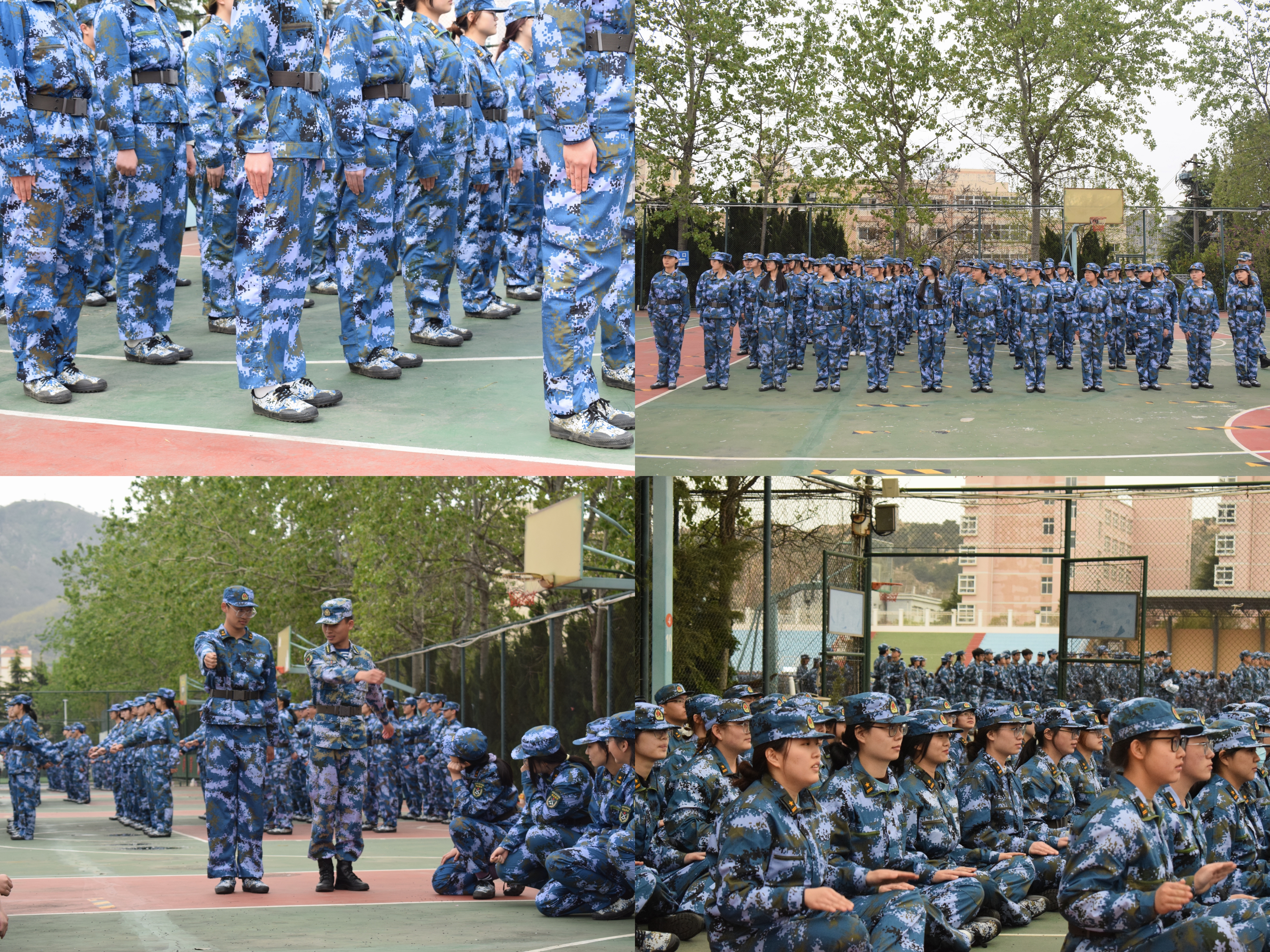 整齐划一的蓝色迷彩,意气风发的坚定步伐,在教官的口令声里,同学们认真完成着训练动作,一个个整齐的蓝色方阵成为校园中亮丽的风景线。