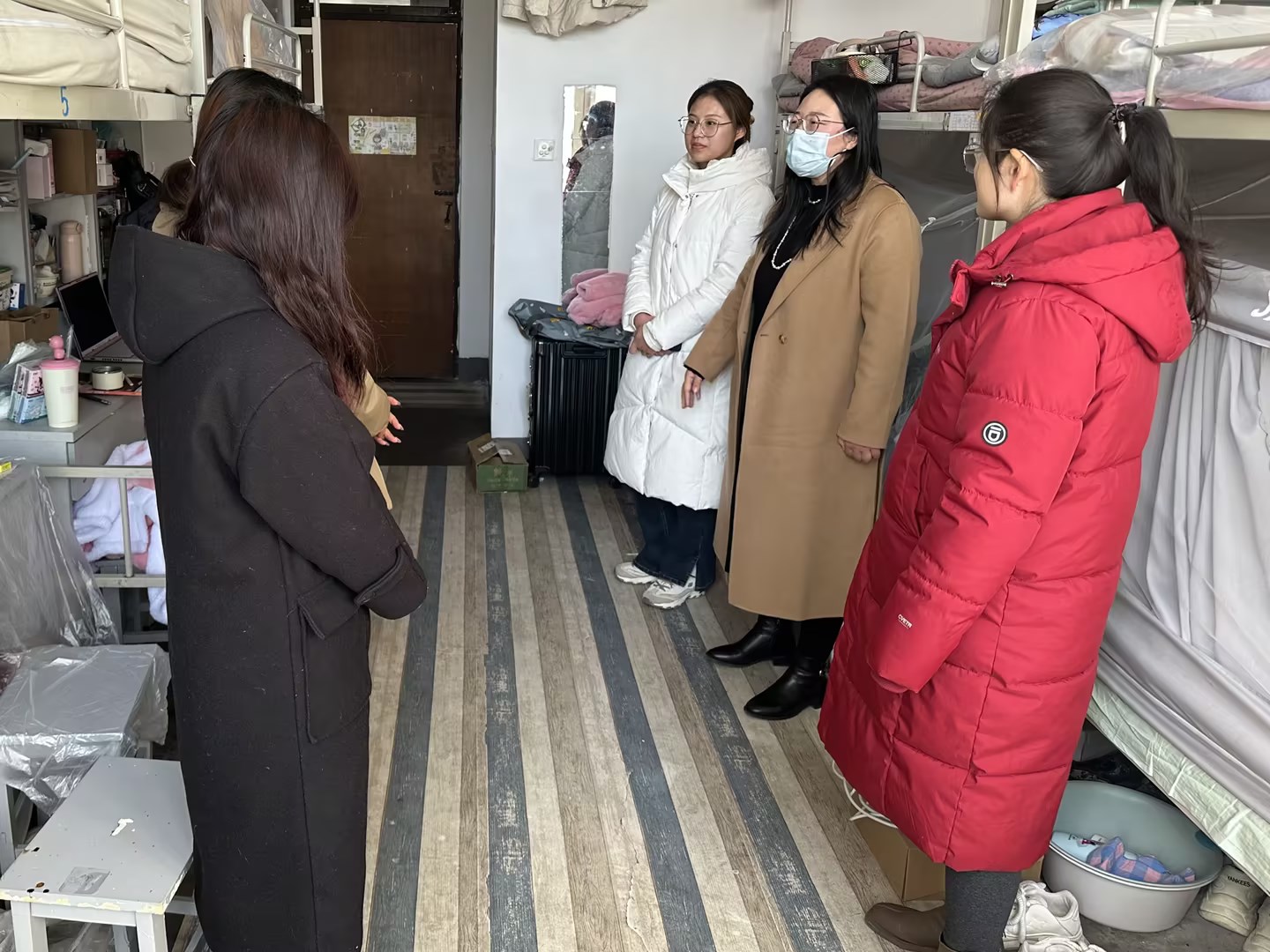 随后,学院全体辅导员对已返校学生宿舍进行了走访,对违章电器、电动车室内充电、违规停放等安全隐患进行了全面排查,并就文明宿舍创建、和谐氛围营造等方面为同学们提供了建议。