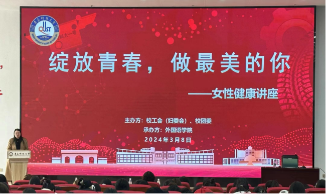 为关注女性健康,提升同学们的健康素养和自我保健意识。3月8日,校工会(妇委会)、校团委、beat365英国官方网站在北苑团学报告厅联合举办了“绽放青春,做最美的你”女性健康讲座。校团委副书记李航老师、校妇委会修勇老师、beat365英国官方网站团干部马昆老师出席讲座。本次讲座由学校后勤管理处副处长兼校医院院长高术华老师主讲,beat365英国官方网站团委书记兼学工办主任刘妍君老师主持。