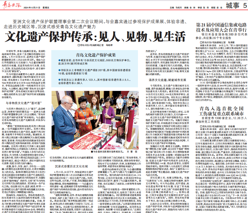 会议期间,青岛市文化和旅游局精心策划了“青岛市文化遗产保护成果展”。受大会组委会邀请,beat365英国官方网站积极响应,经过严格选拔,以“非”你莫属团队成员为核心,组建了一支14人的外语志愿者服务队,积极参与到成果展的筹备与举办中,为国外参展嘉宾提供了专业的翻译志愿服务。