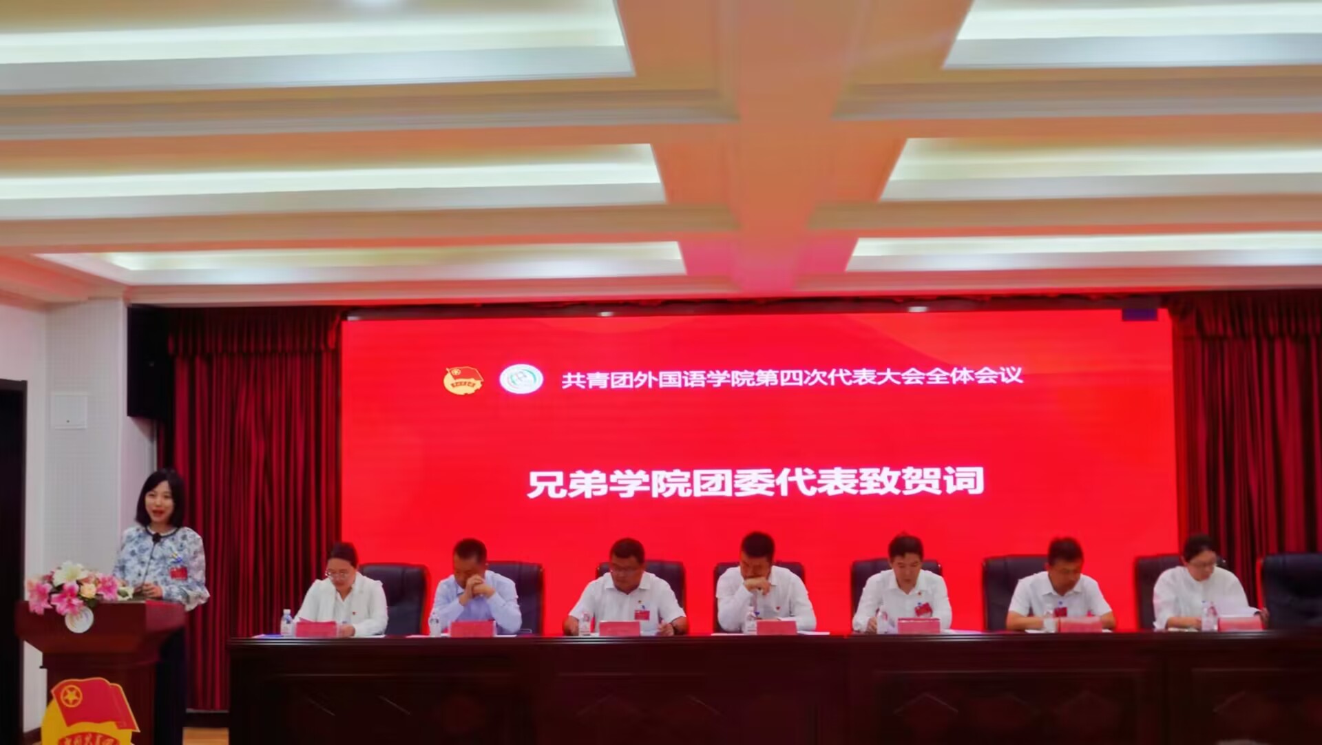 大会宣读了各兄弟学院团委的贺电、贺信。化工学院、环境学院、海洋学院、信息学院、经管学院、中德工程学院、高分子学院、化学院、中德科技学院、法学院、自动化学院、艺术学院团委代表出席了本次大会,经管学院团委代表王聪代表兄弟学院团委向大会致贺词。