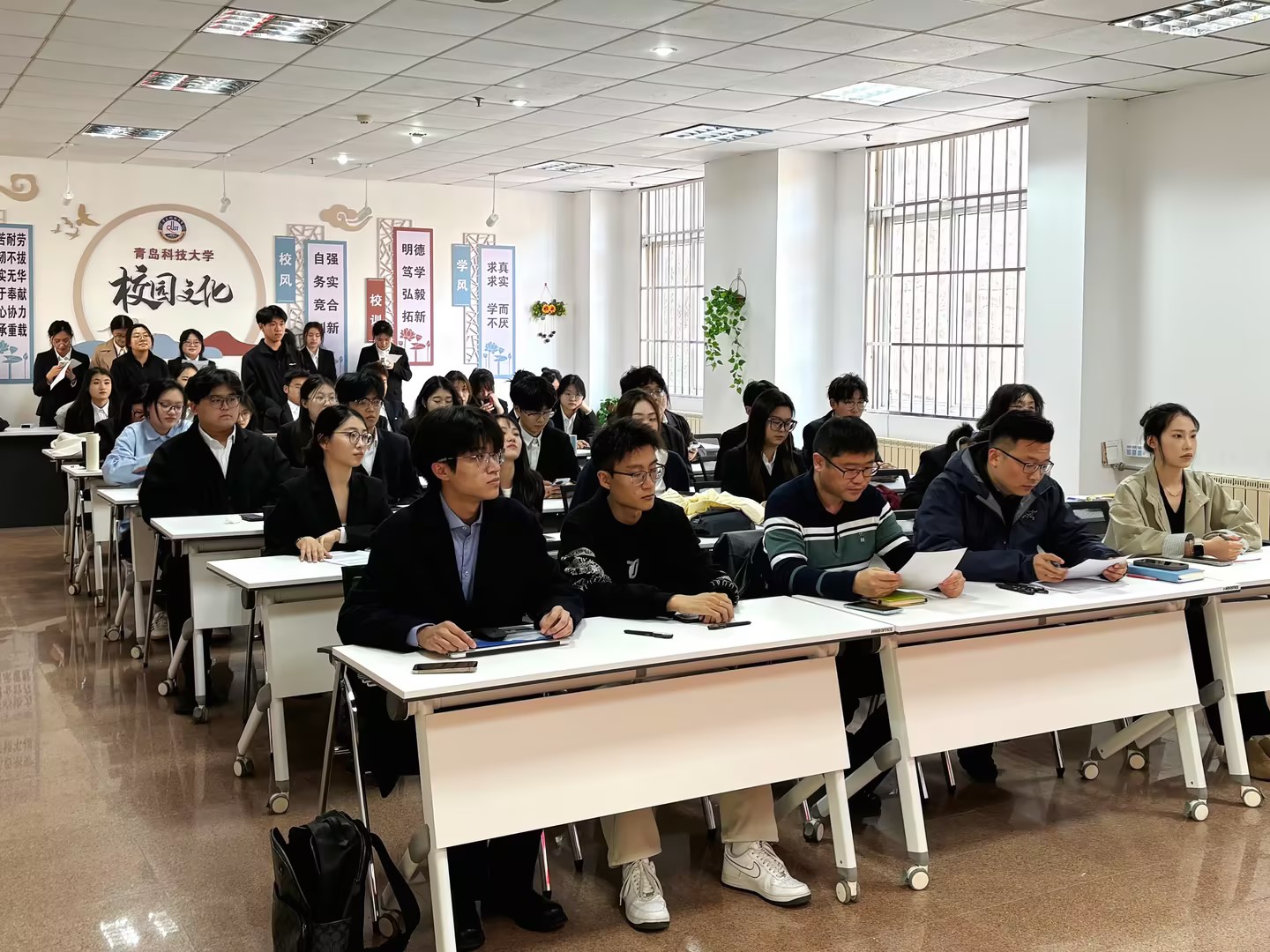 马寒老师在总结讲话中紧扣新时代青年使命,对学生骨干提出三点要求:一是提高政治站位,深入领会“我是谁、为了谁、依靠谁”的核心内涵,持续深化组织改革,切实去除“机关化、行政化、贵族化、娱乐化”倾向,增强政治性、先进性、群众性;二是坚持问题导向,针对述职中暴露的流程规范性不足、资源整合力度薄弱等短板,建立整改台账并限期落实;三是锤炼务实作风,以“不积跬步无以至千里”的韧劲深耕服务细节,在学风引领、权益反馈、文化建设中发挥桥梁纽带作用。他勉励全体学生骨干以此次述职为契机,凝聚共识、锐意进取,为建设更有温度、更具效能的学院学生工作体系贡献青春力量。
