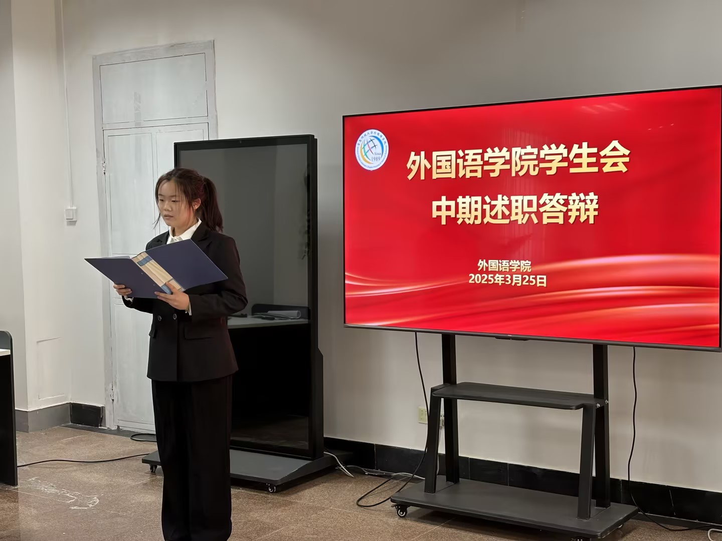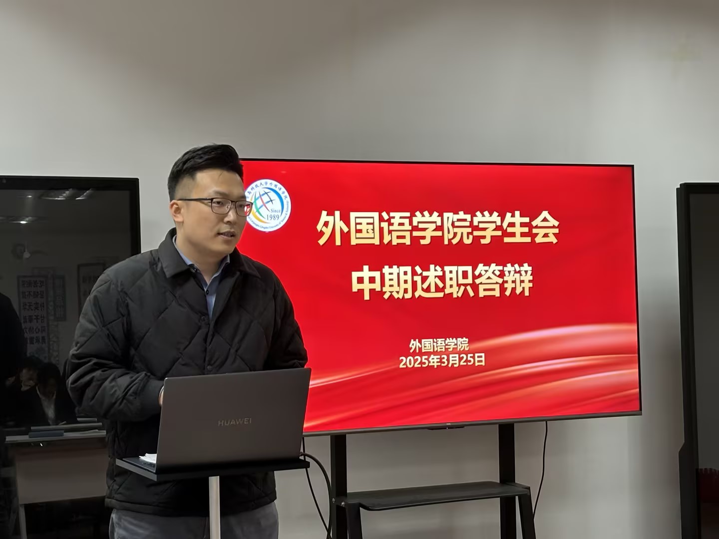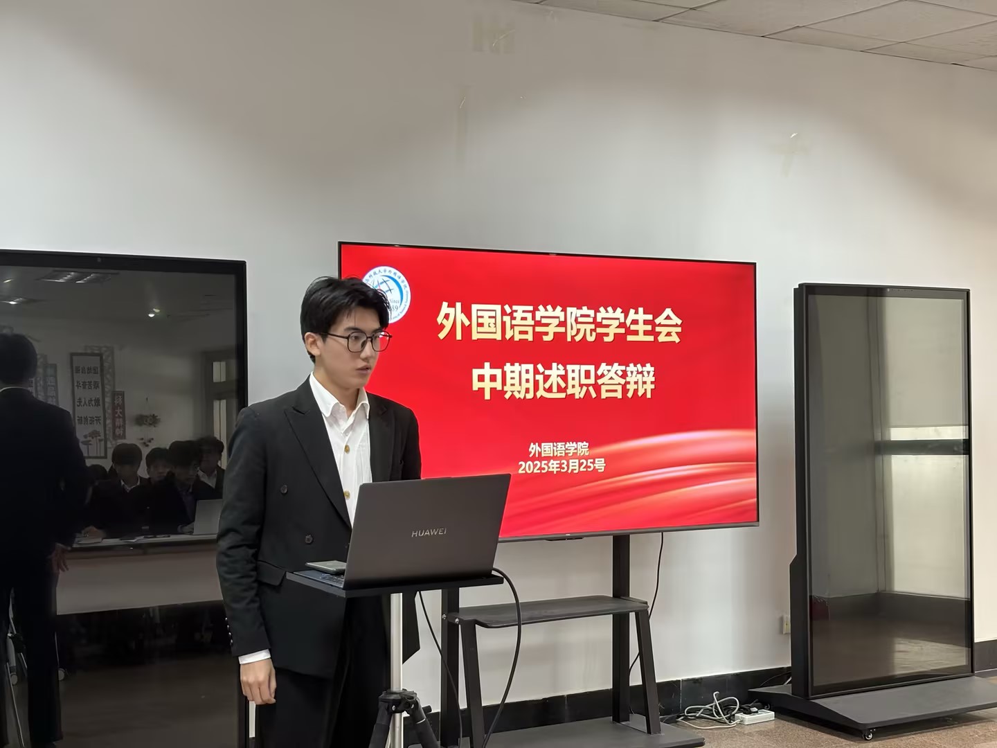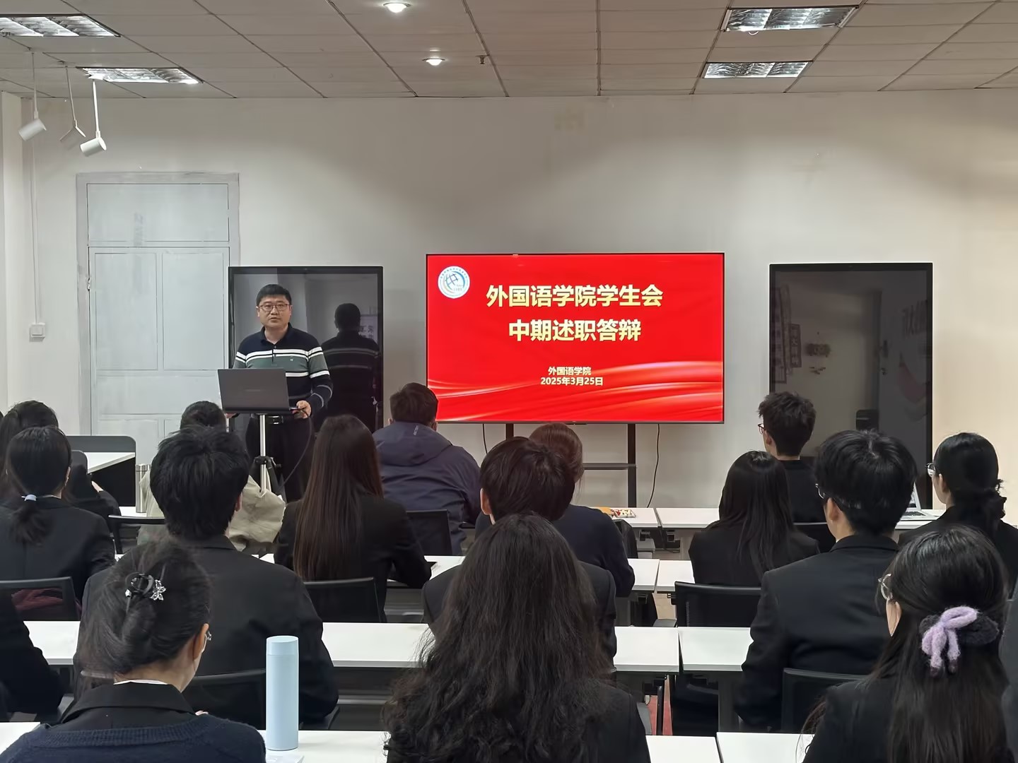 王玉凯老师对述职内容进行逐一点评,充分肯定学生骨干在活动策划、机制创新、团队建设中的积极作用。他强调,学生组织需进一步强化“需求导向”,在服务同学学业发展、权益维护、就业指导等领域深耕细作,同时要求各部门主动对标学院“语”你同行学生工作品牌建设,将打造品牌活动理念贯穿活动设计、资源整合、服务创新的全过程,以品牌化、项目化思路提升工作内涵。