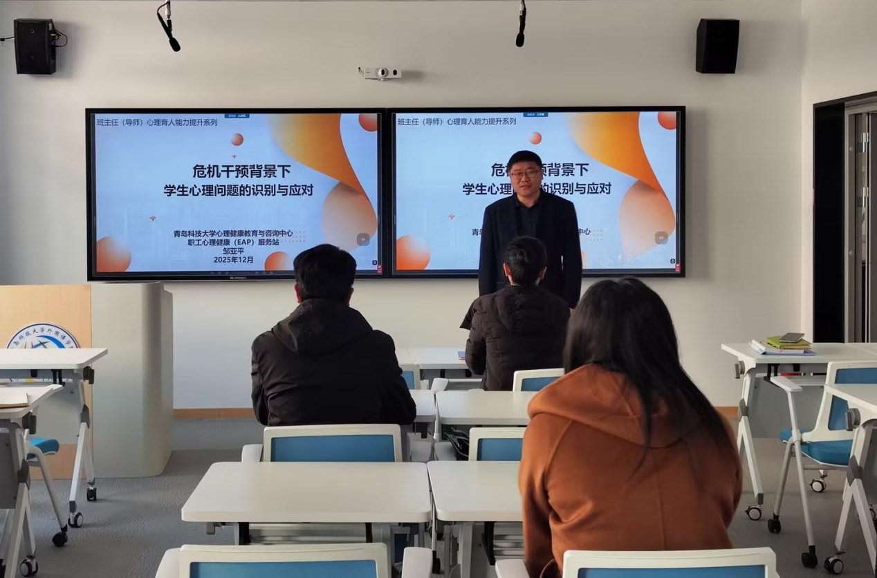 培训会上,邹亚平围绕“学生常见心理问题、识别方法、应对策略”三大核心模块展开深入讲解。结合高校学生成长规律与心理发展特点,系统梳理了当前学生在学业压力、人际交往、情绪调节、生涯规划等方面易出现的心理困扰,通过通俗易懂的语言解析了各类问题的成因与表现特征。