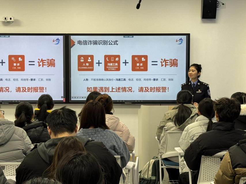 12月9日,beat365英国官方网站开展“防范电信网络诈骗”专题活动。本次活动特邀崂山公安分局金家岭派出所民警现场授课,以“案例剖析+知识普及+实操指导”的形式,系统解读电信网络诈骗的新套路,为同学们带来了一堂兼具专业性与实用性的安全知识盛宴。