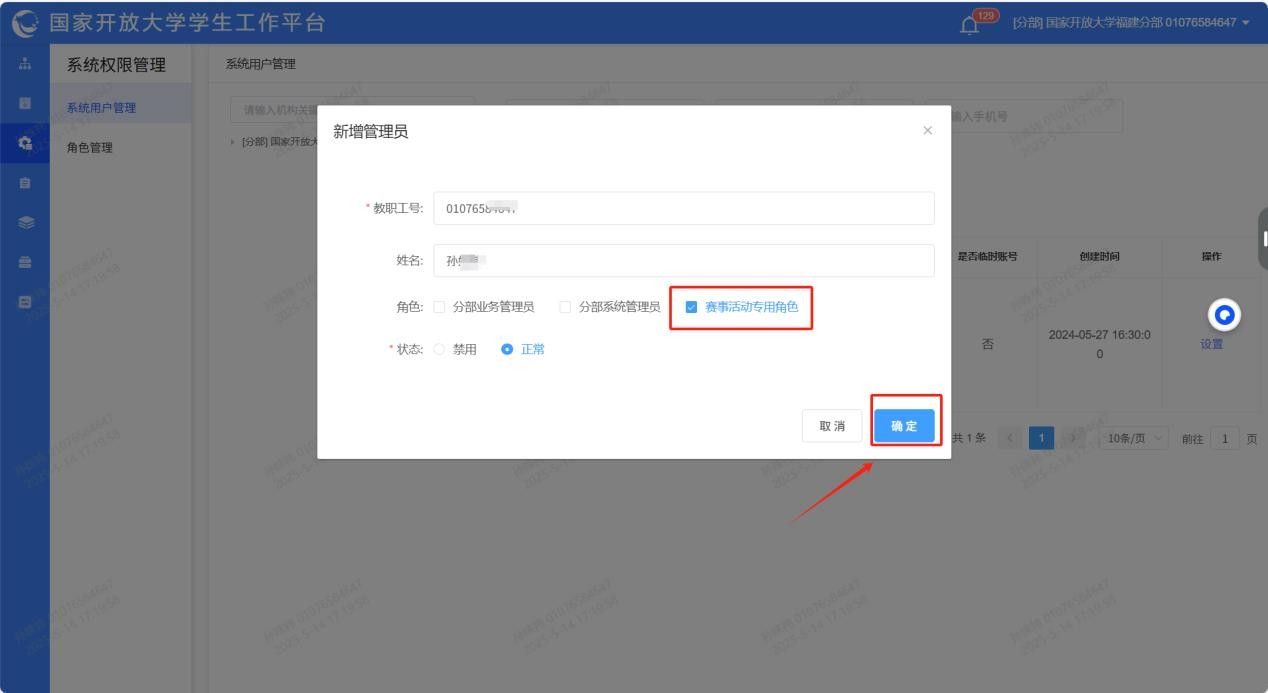 (一)进入【系统用户管理】,点击【新增管理员】权限。