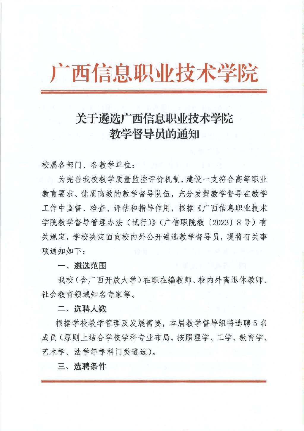 关于遴选pg娱乐电子游戏官网入口教学督导员的通知