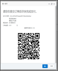 2.选择支付方式支付宝或微信,点击“确定”,待跳转支付二维码后,扫码支付即可。目前支持支付宝和微信支付两种方式。