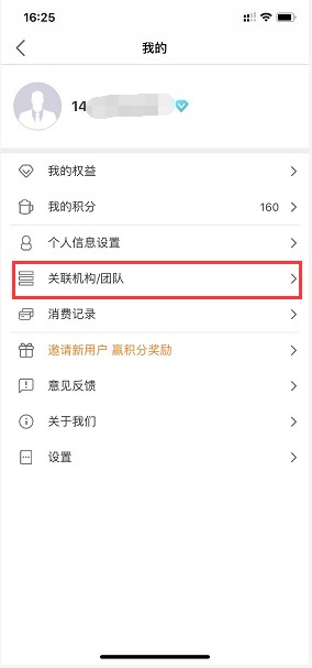 3、登录个人账号后,在研学平台“个人中心”,选择“关联机构团队”,在关联处输入(口令:BC4PND),关联成功后出现学校名称即可正常使用。(如下图片所示)