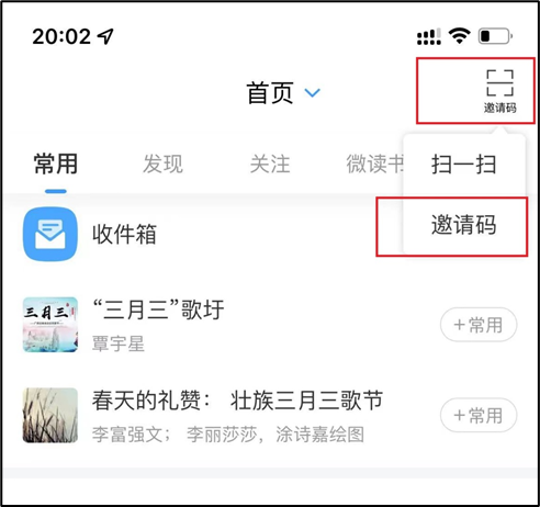 ①登录“学习通”APP后,首页右上角邀请码处输入邀请码"cxb"进入活动界面。