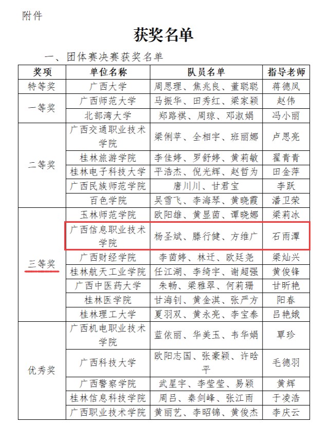 据悉,广西高校大学生信息素养挑战赛是一项为贯彻教育部《教育信息化2.0行动计划》通知精神,落实教育部《高等学校数字校园建设规范(试行)》有关信息素养培养方式的总体要求,强化大学生信息意识,提高大学生信息知识掌握程度,培养大学生信息应用能力,增强大学生信息伦理与安全素养,全面提升大学生信息素养教育水平,同时旨在全力推动广西高校信息素养教育教学,促进广西高校信息素养教育全面健康发展的重要赛事。